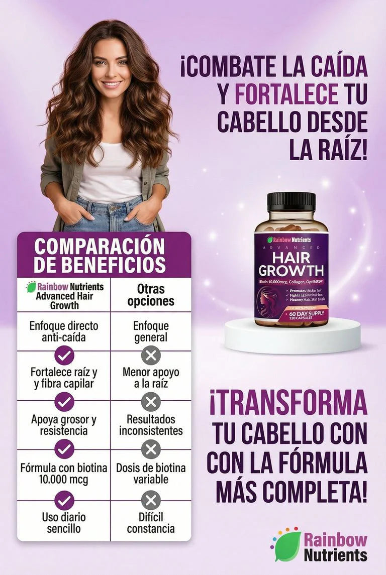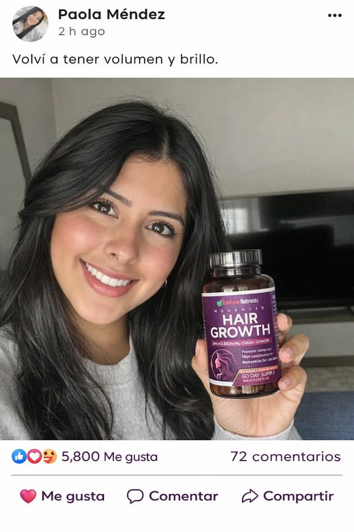 Hair Growth estáespecialmente formulado para mujeres, pero puede ser usado por cualquier persona que quiera fortalecer su cabello desde la raíz.