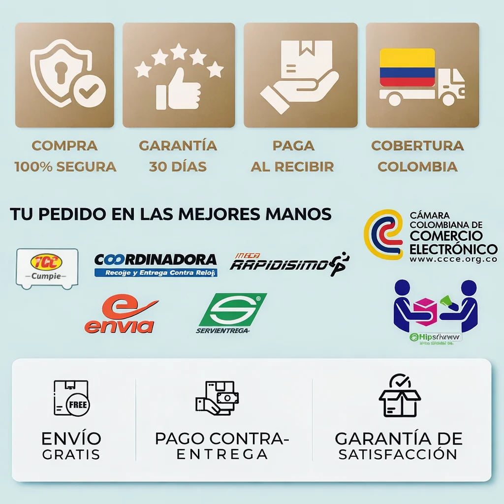 Además, ofrecemos pago contra entrega, lo que significa que solo pagas cuando tienes el producto en tus manos. Sin riesgos, sin preocupaciones.